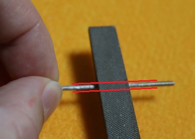 ねじ山が回転サーボモータの配線の被覆を損傷させるため、ねじの中央部をヤスリで削る。