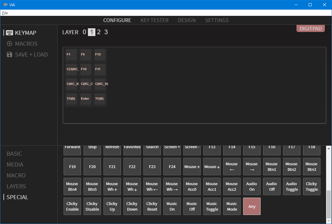 「Special」の「Any」を活用すれば、複雑な組み合わせのキーも割り当てることができるようになります。例えば、「C(KC_X)」なら「Ctrl+X」が、「C(S(KC_F5))」なら「Ctrl+Shift+F5」のキーが押されます。