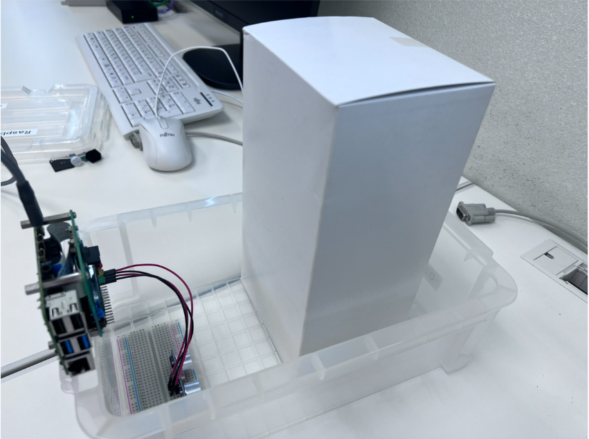 ・超音波距離センサーを利用して荷物が置かれた時と取られた時に画像とメッセージをLINENotifyに送信する