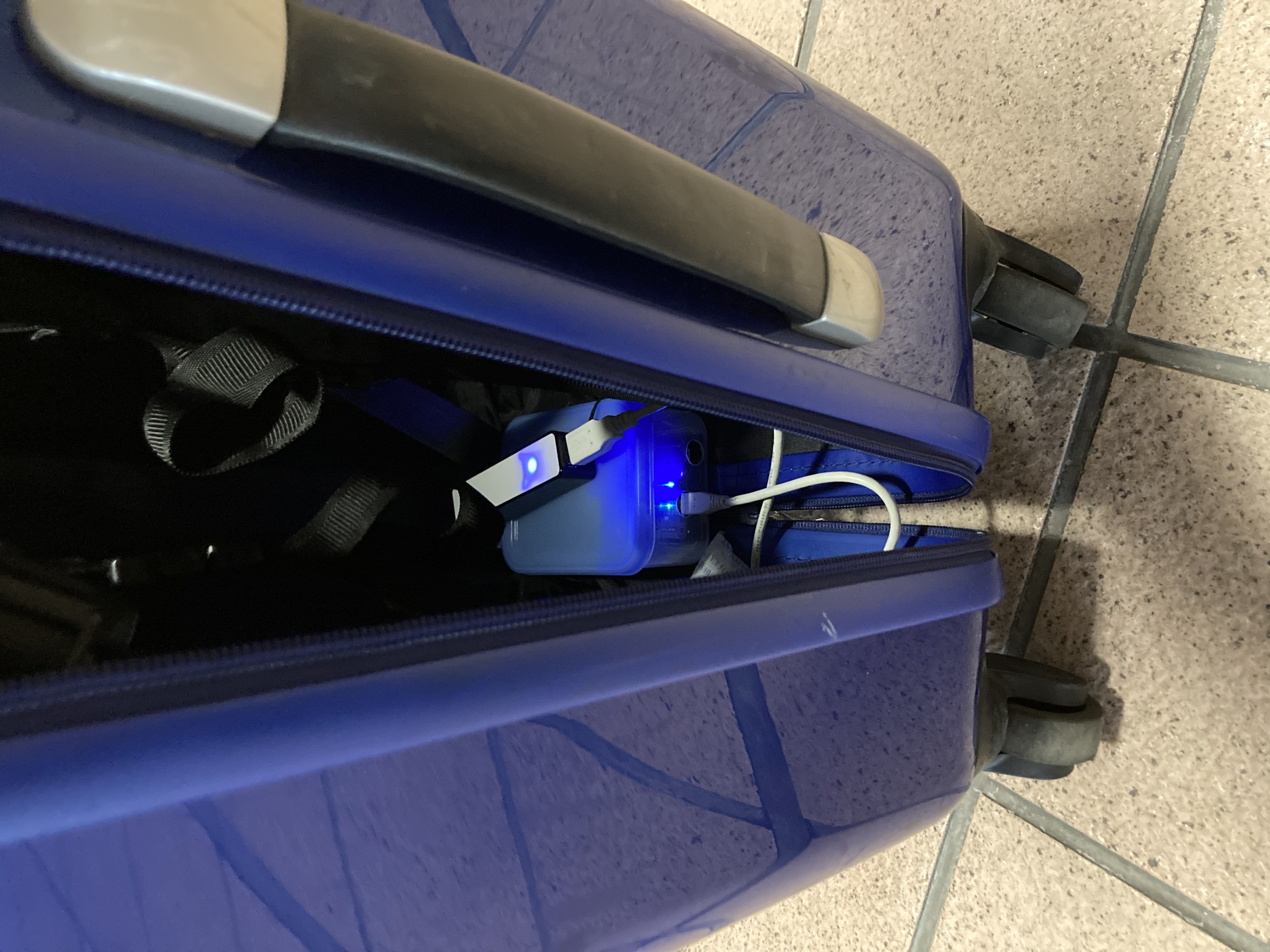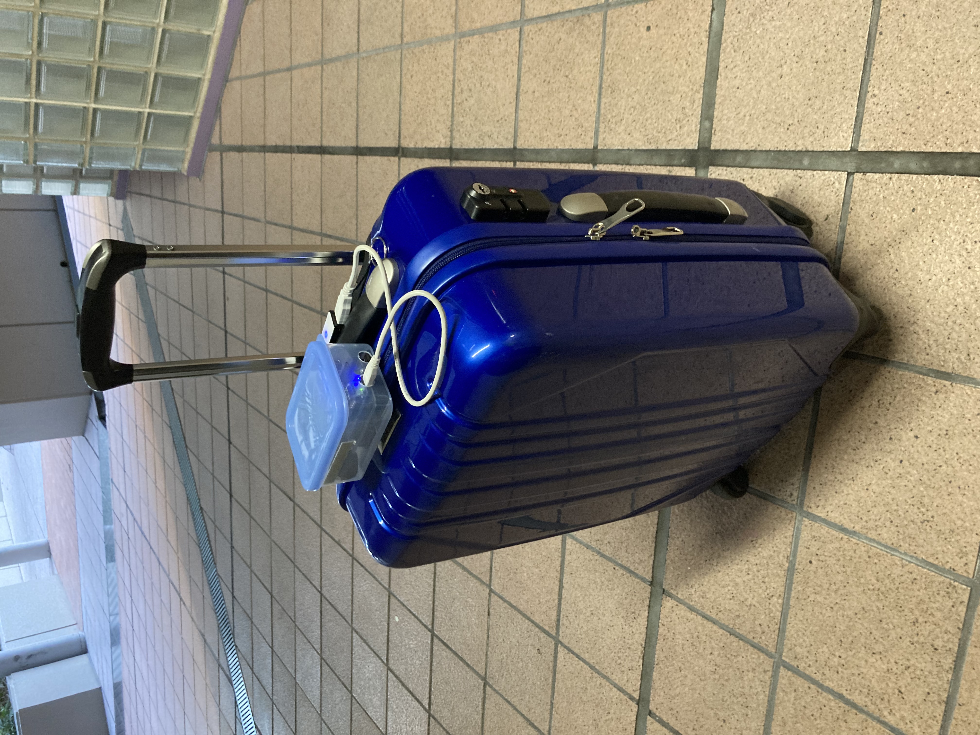 私が路面の状態で一番苦労したのはベビーカーを押すときだったので、本来ならばベビーカーに設置して検証したかったのですが、既に子供も大きくなり手放してしまったため、今回はスーツケースに取り付け、動作確認を行いました。