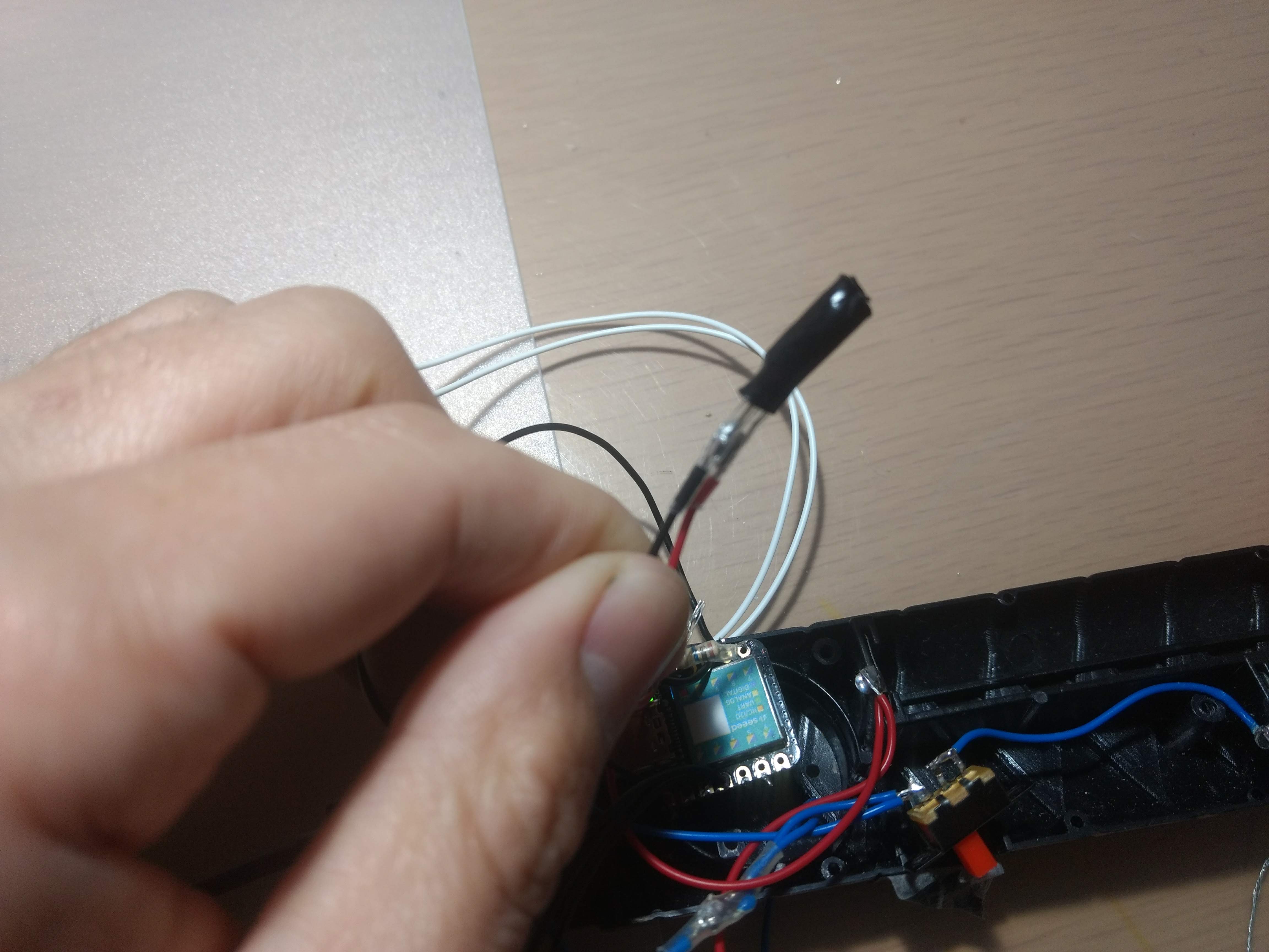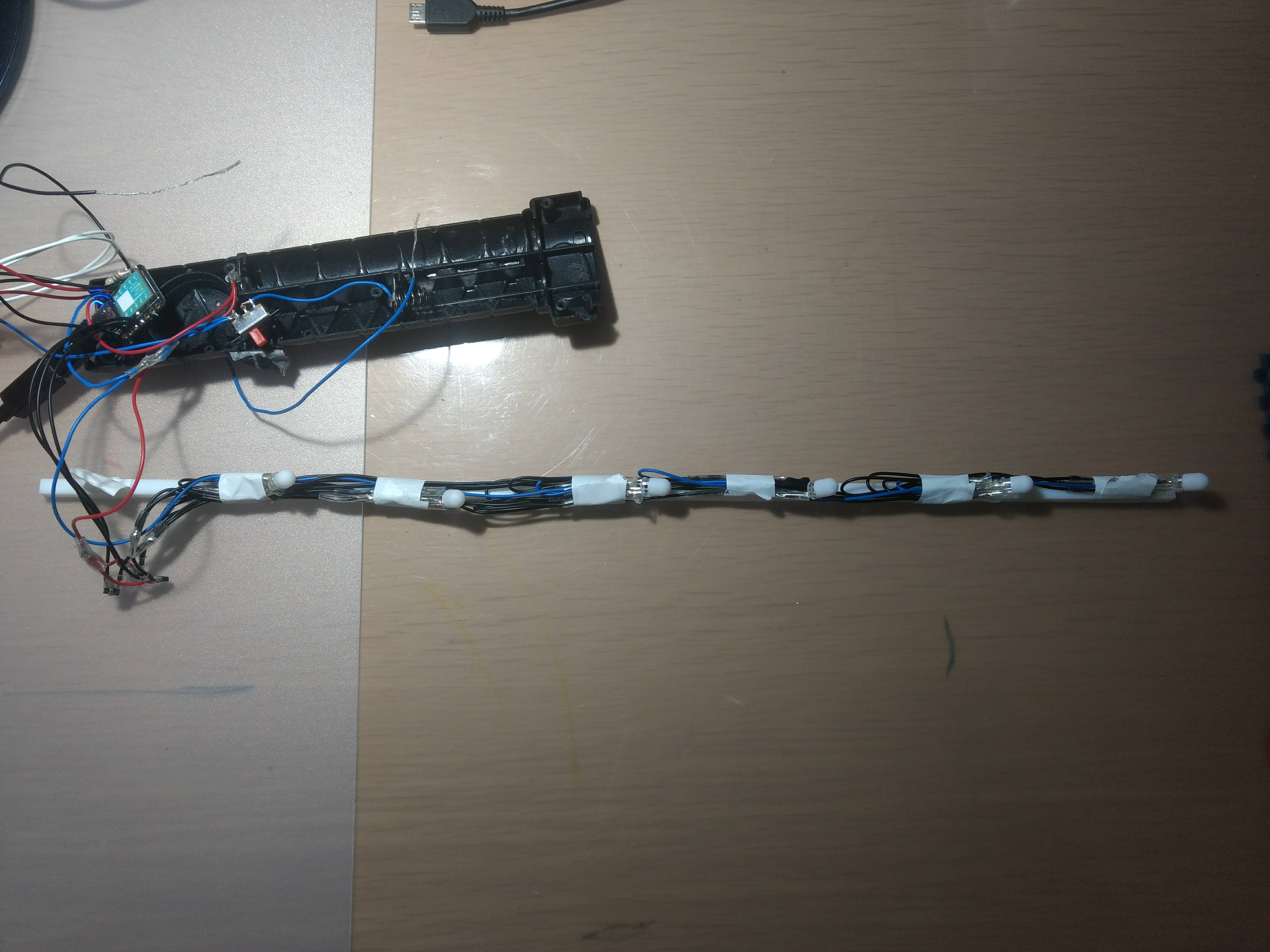 柄の部分にリード線を這わせて、握った時に皮膚抵抗を検知する様にした。