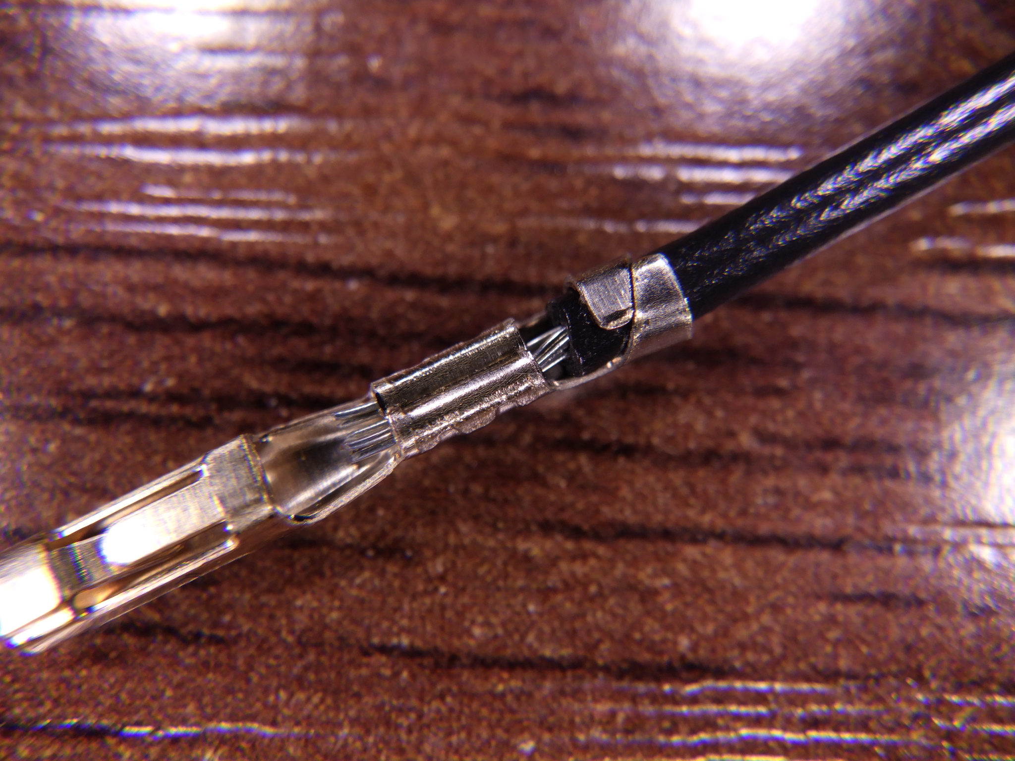 とありますが、流石にその程度の圧着では不良なのではないかと思います。molex 圧着ハンドブック(産業向け) には、引っ張り強度テストの規格値として、AWG #26 の場合に 3 ポンド(約 1.36 kg)で引っ張っても抜けない必要があると書かれています。