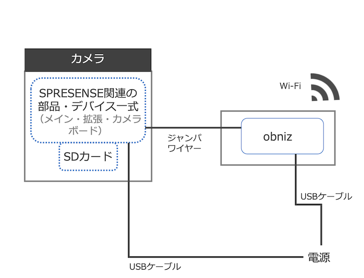 今回、Spresense を使ったカメラ撮影を obniz を使ってインターネット越しに実行できるようにしました。
