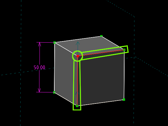 今回の場合、手前の四角い面の直交する辺を2つと、いずれかの頂点を1つ選択して、「手前の面」というものを指定してあげます。