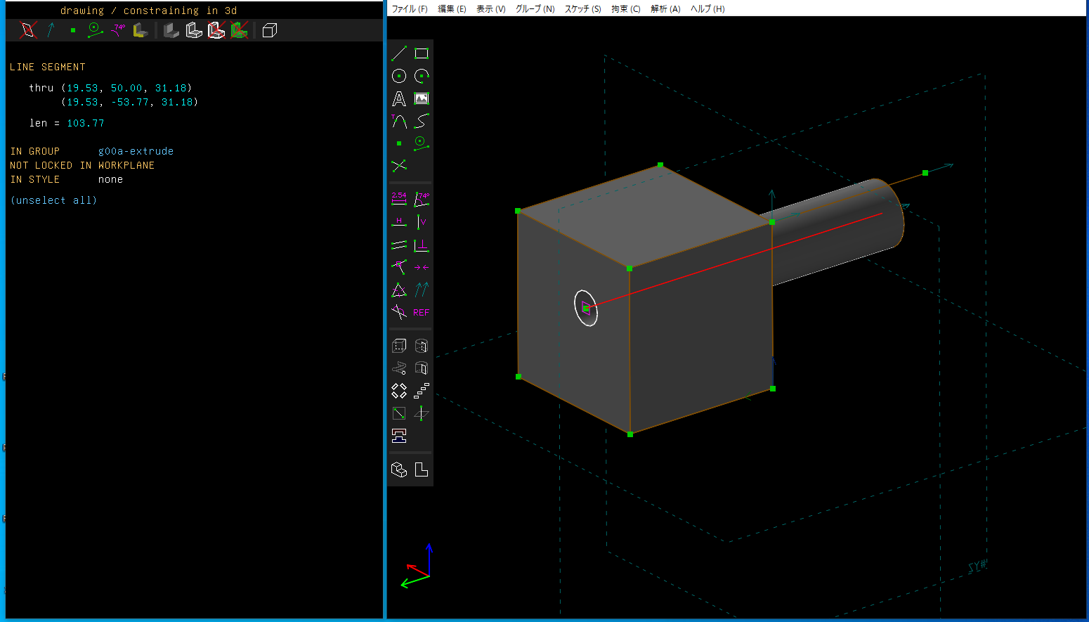 20303D CAD SolveSpace入門 (2) : 作業平面を指定してスケッチ、押し出し、切り取り