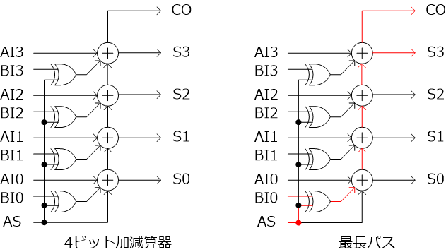 4ビットの加減算器と最長経路