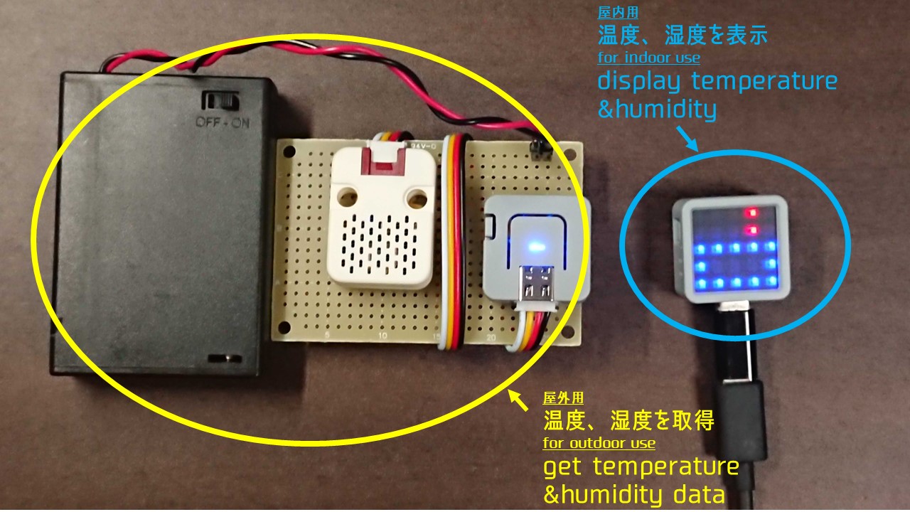 上の写真の左側のユニットは室外用で、ベランダの壁に貼ることを想定しています。また、右側のATOM Matrixは、室内で外の気候をモニターするために使用します。