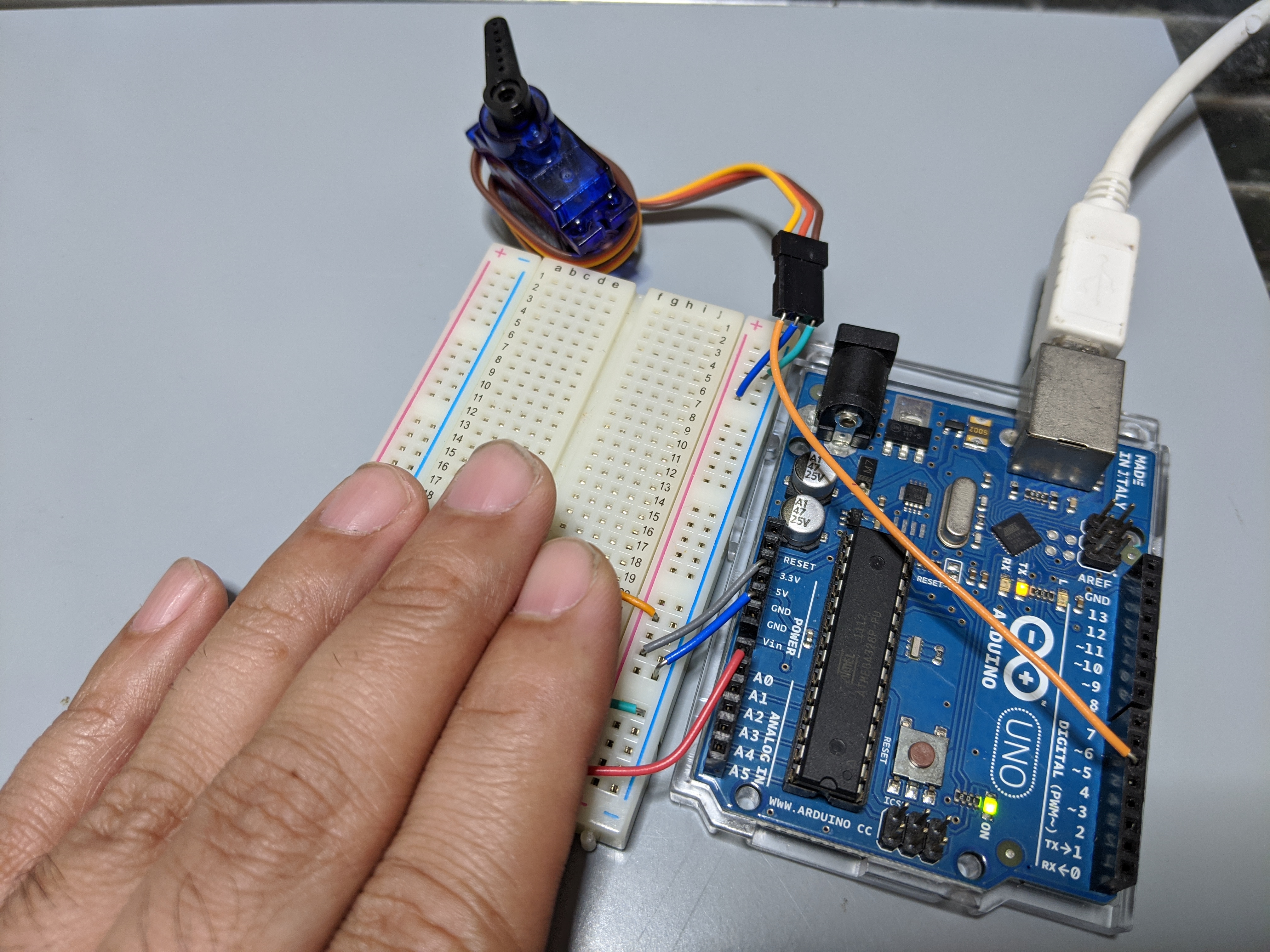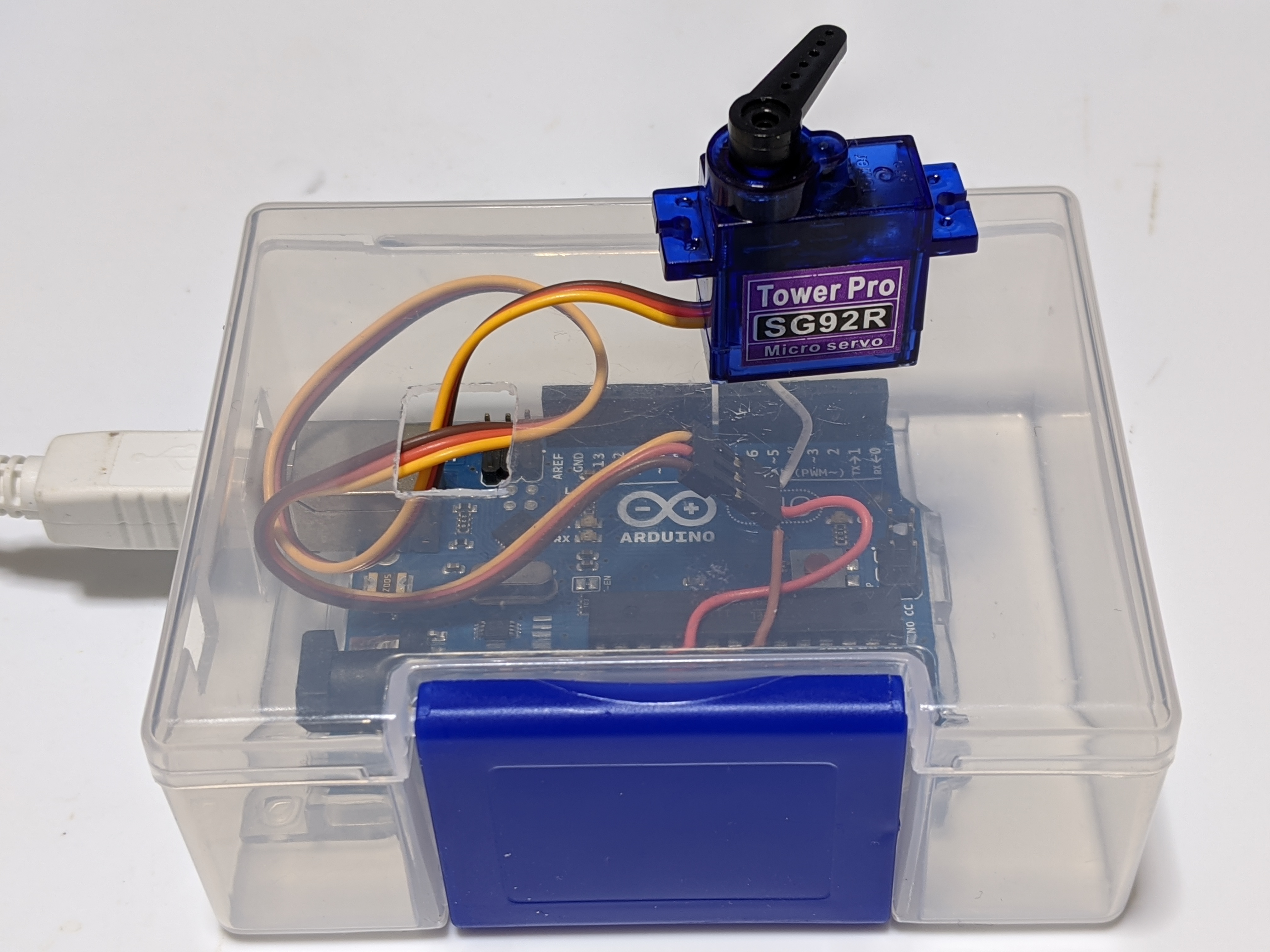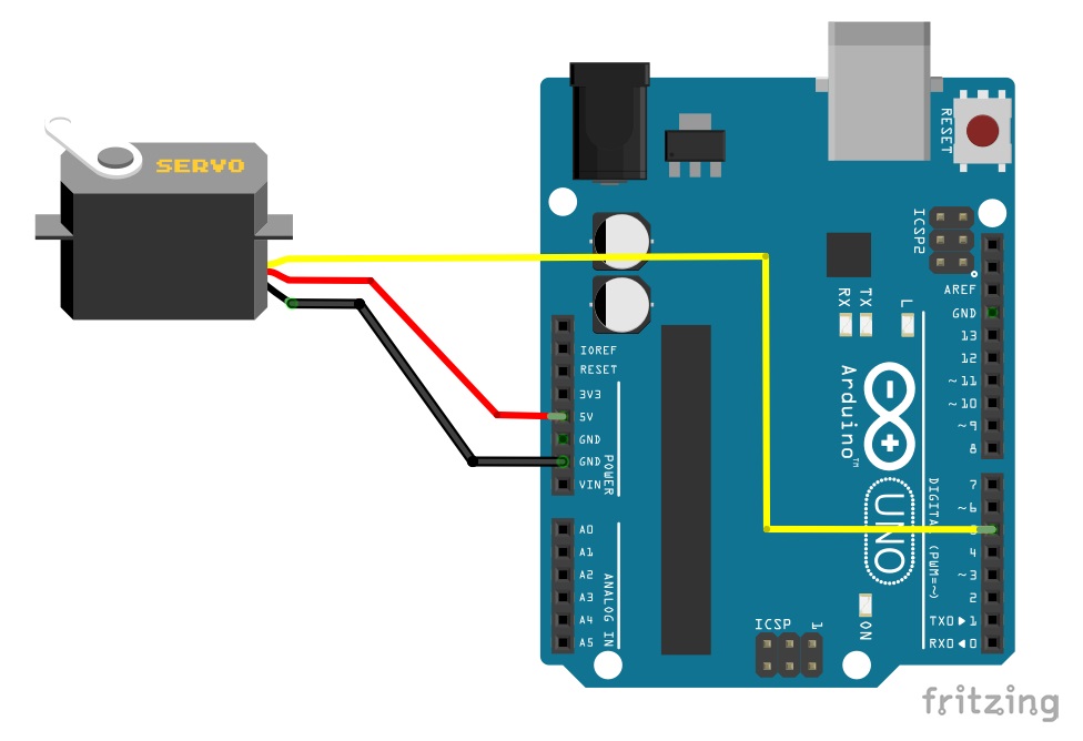 ちょっと強引ですが、Arduinoマイコンボードに1個のサーボモーターを接続して動かしてみましょう。