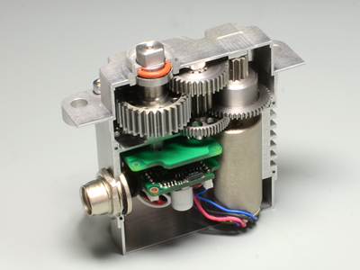 その中身は沢山の歯車がかみ合って動いている小さなギアボックスが入っています。この歯車の内容でサーボモーターから取り出せる力の大きさや動作する速度が定められています。