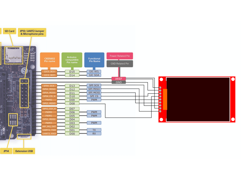 押し込むだけ。 - ILI9341 を Spresense 拡張ボードに接続。