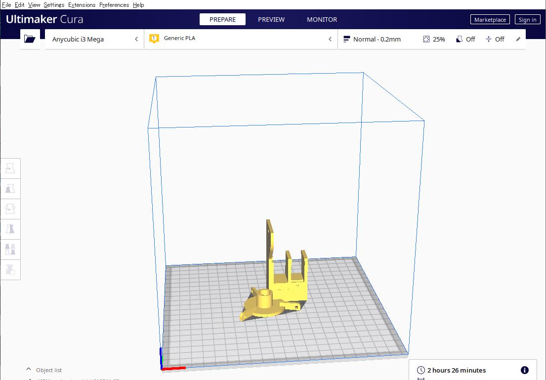3D プリンターは Anycubic Mega S を使ってます。Cura で作成した gcode ファイルを読み込ませて印刷します。