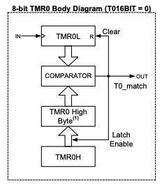 PIC16F18313のTimer0は従来の8bitから16bitに拡張された。また8bitモードでも使えて、コンペアで割り込みできるようになった。