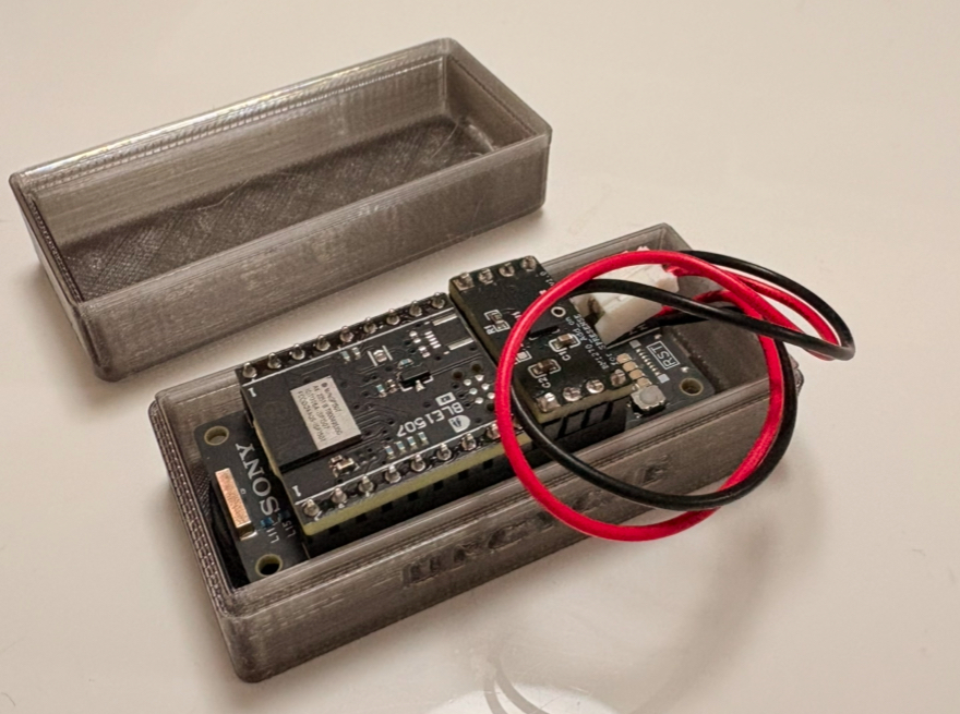 このシステムの原型をMFTで展示しご好評いただきましたが、インターネット接続部分の制作に苦戦していました。今回、会場でいただいたアドバイスを元にLTE拡張ボードでインターネットに繋ぐ方法に変更し、ケースを小型化すると同時にコードも全て一新しました。