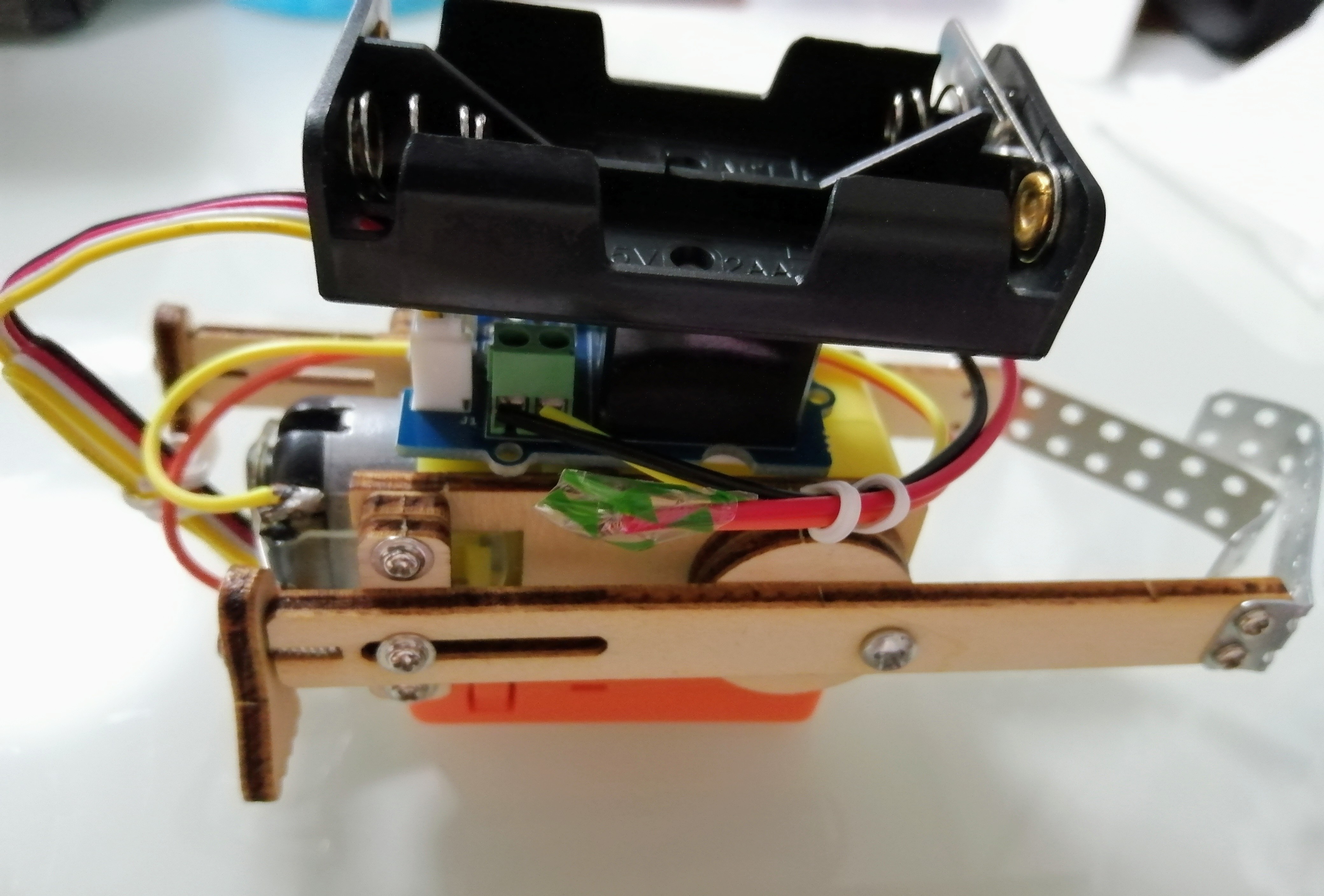 4.DCモーターと電池ボックス、GROVEリレーをつなげます