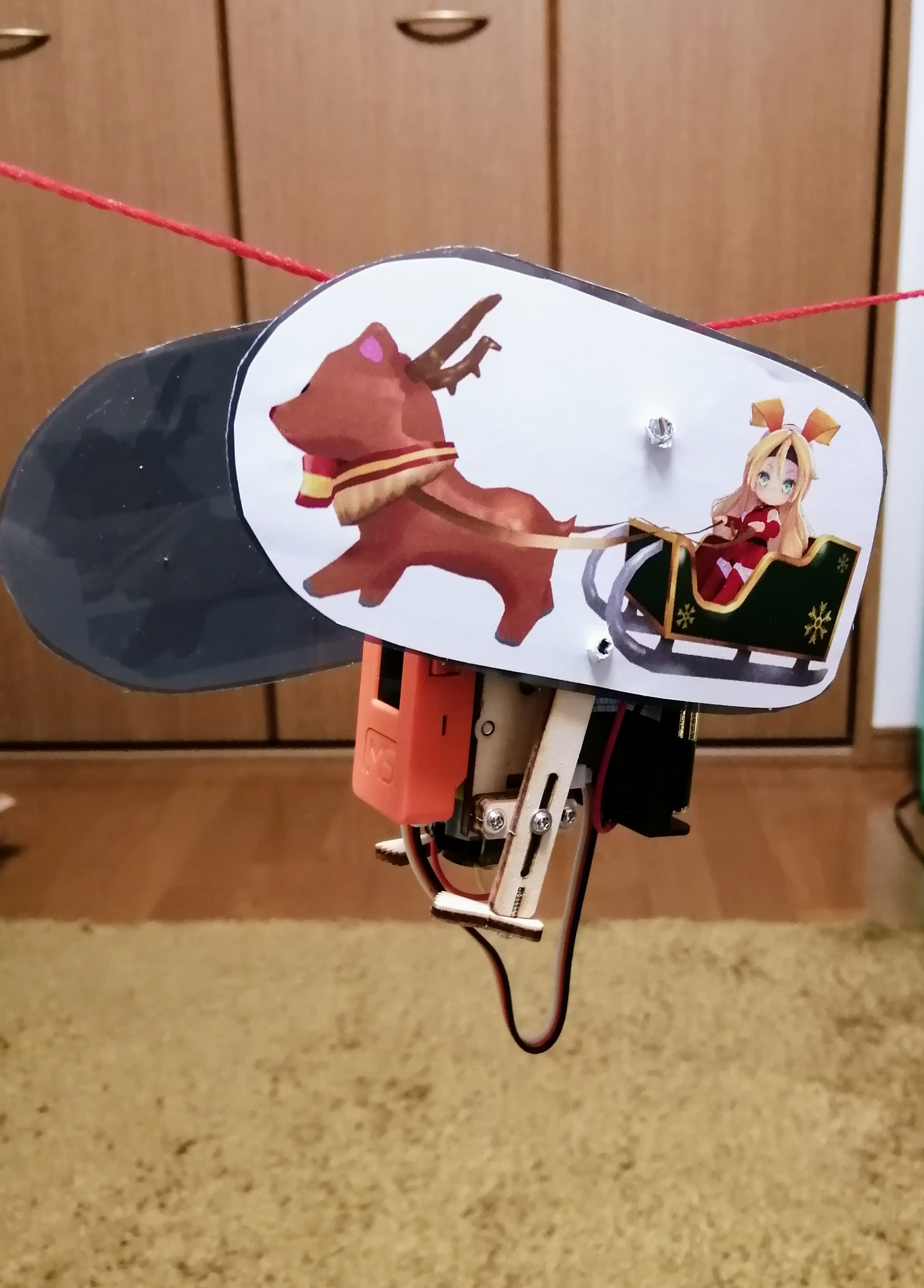 - M5Stick Cを搭載したサンタが、綱を渡っていきます。