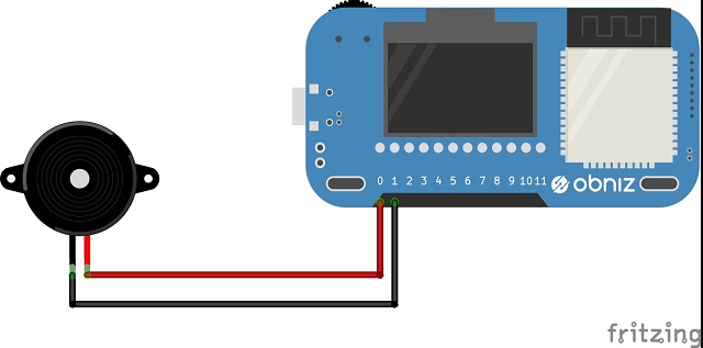 obnizに接続した圧電スピーカーから音を鳴らすサンプルプログラムを紹介します。
