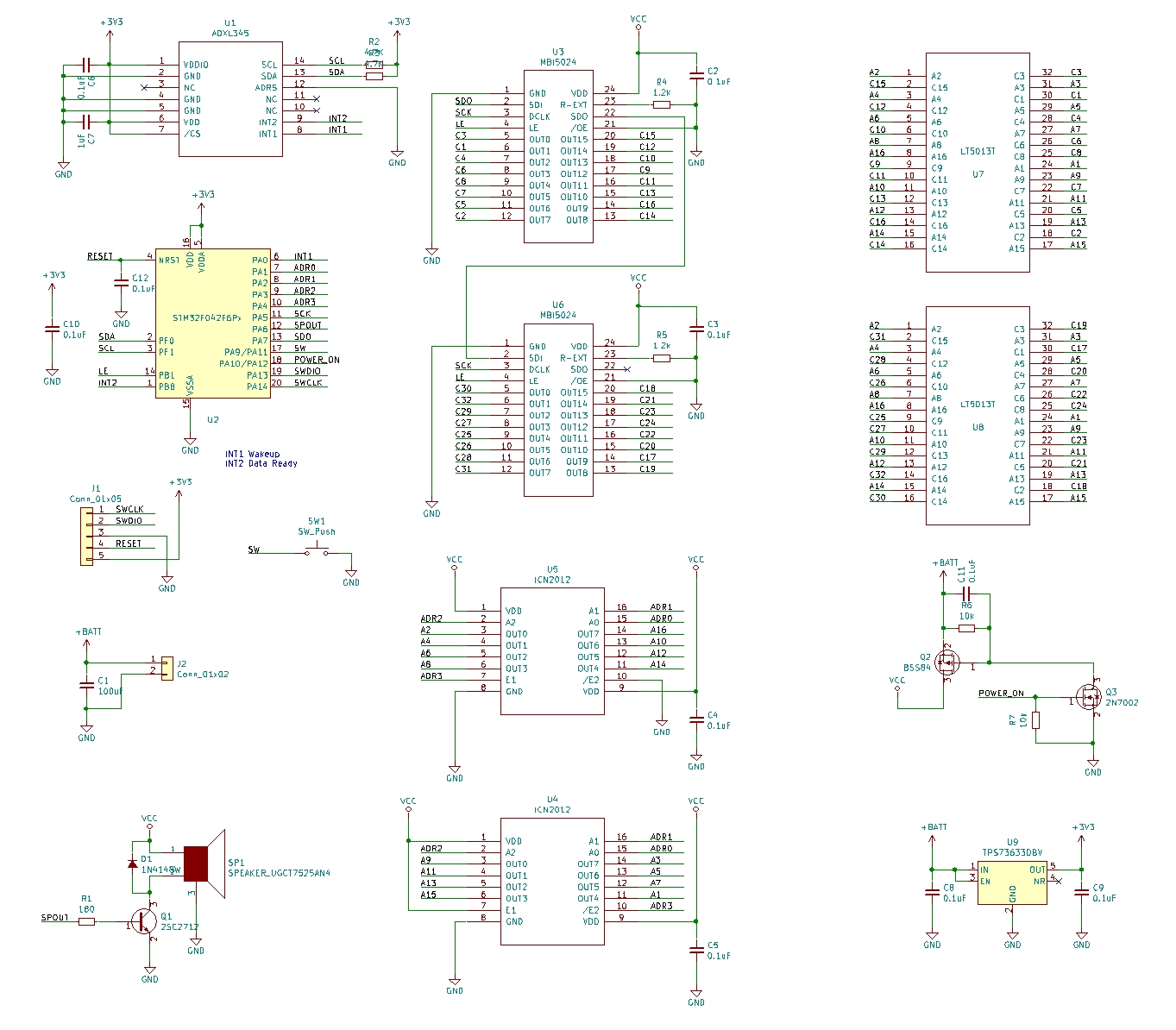 U4, U5はICN2012ですが、LED MATRIXの下になるので、先に実装が必要です。半田不良があったらアウトです。