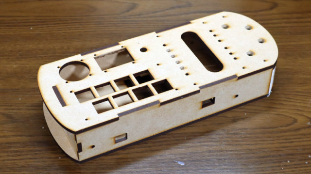 今回、レーザー加工は Anymany 様にお願いしたので、データの書式はそちらの指定に従いました。切り出された部品は仮組みして確認したのち、木工用ボンドで固定します。