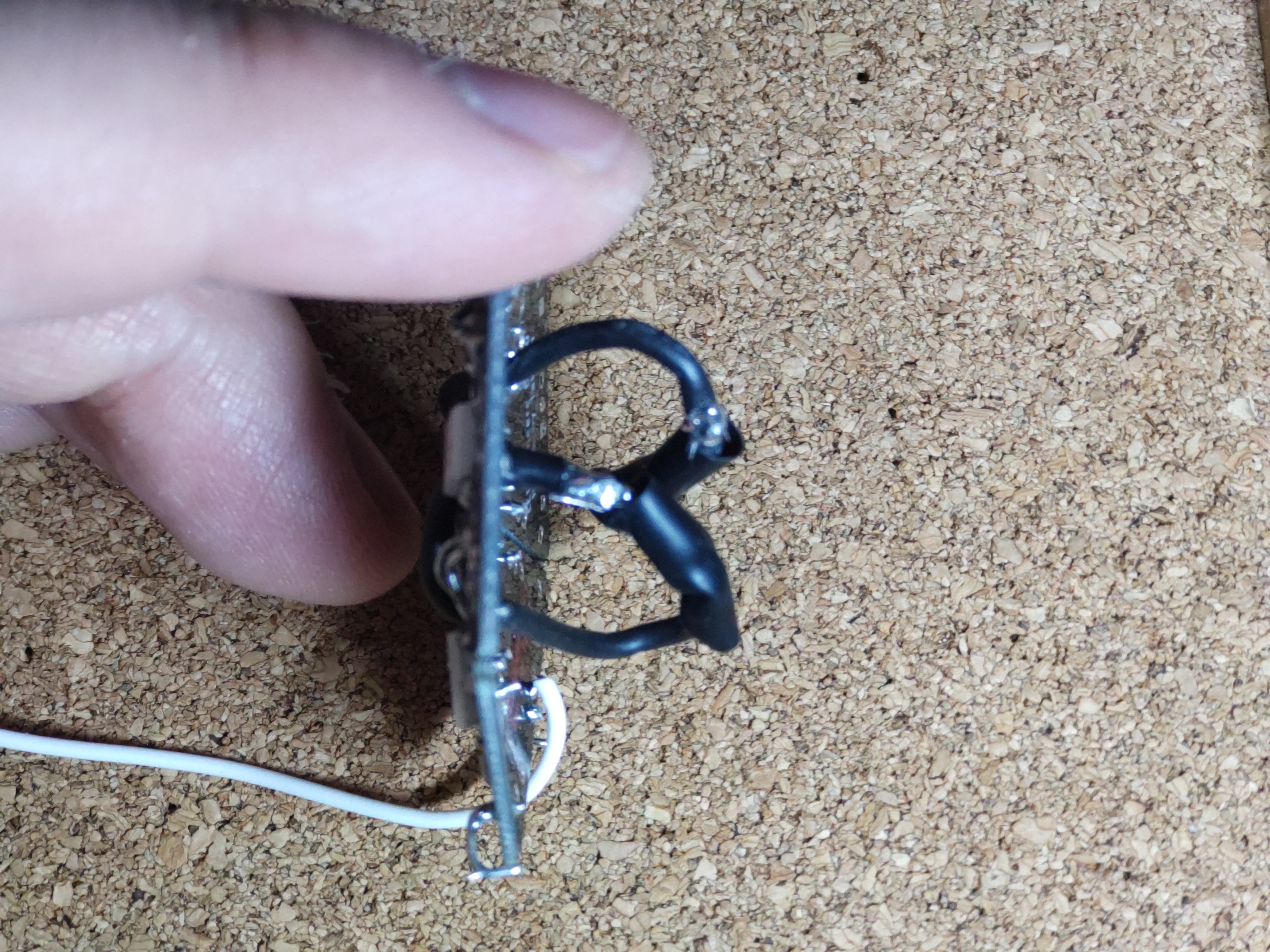 謝ってその部分にはんだごてを当ててしまうと、裏に繋いだ電線が外れてしまい、また開けて修復することになるので十分注意します。