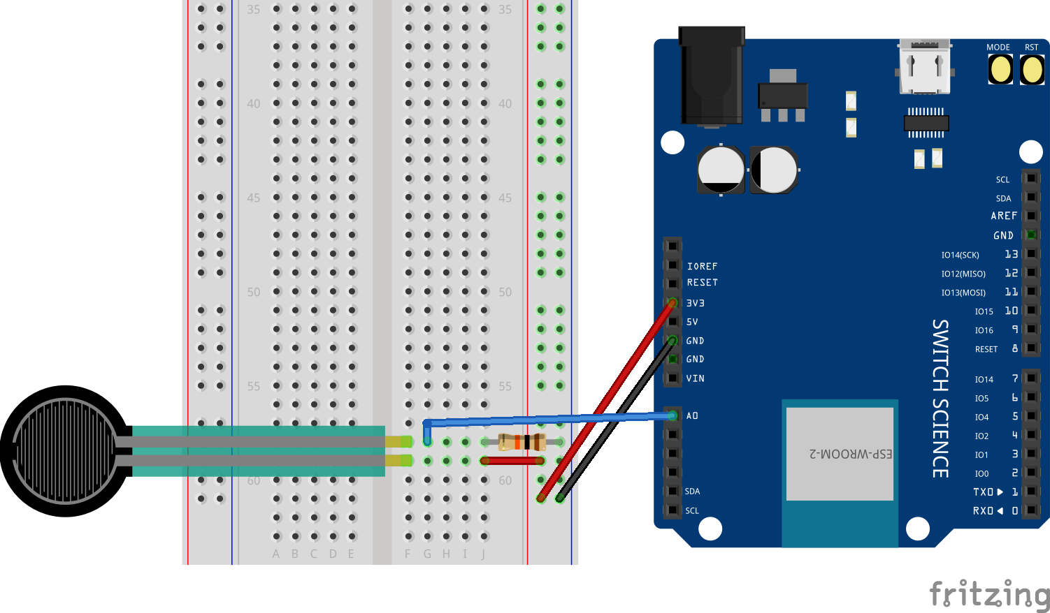 圧力センサーは に繋ぎ、もう片方は の抵抗を使ってプルダウンしています。