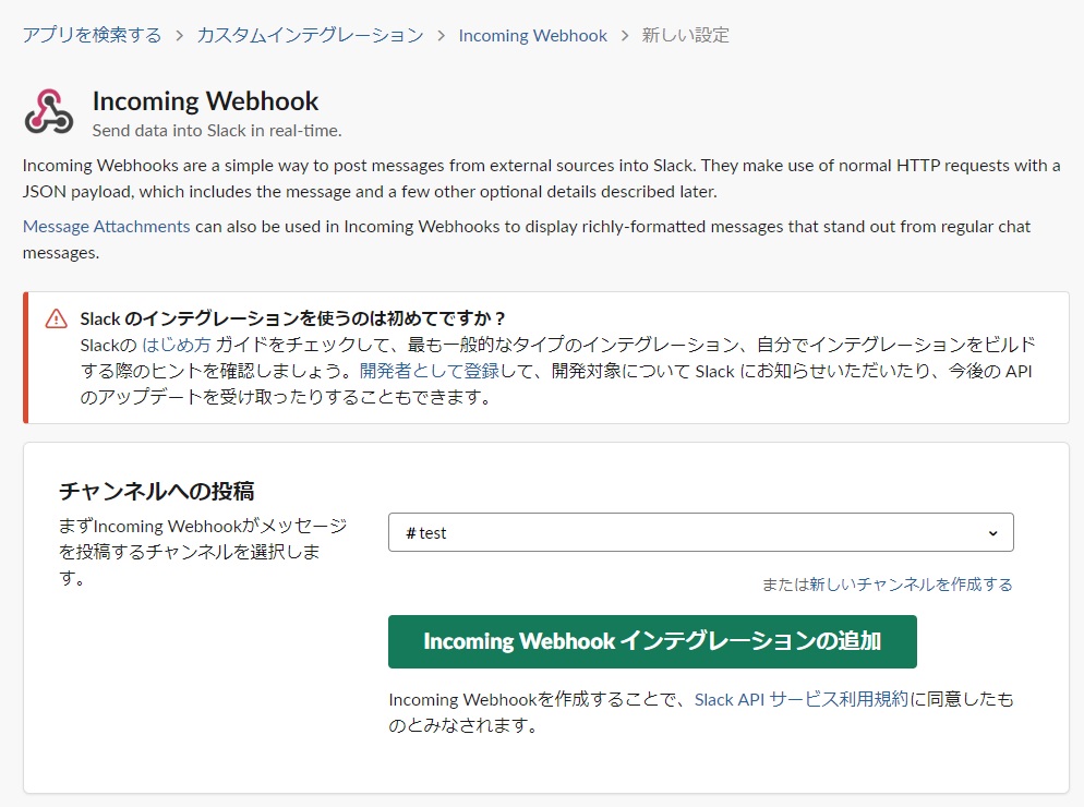 SlackのIncoming Webhookの設定