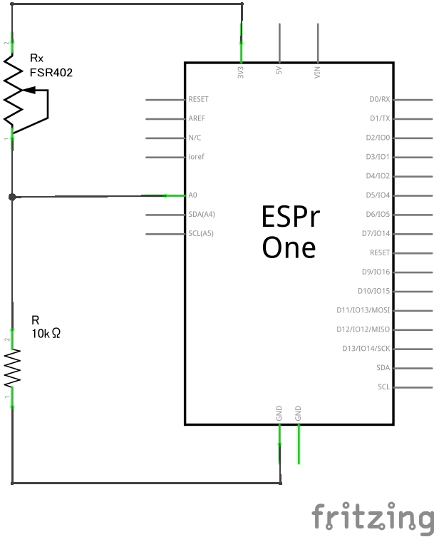 圧力センサーは普段は 程度の抵抗値がありますが、センサー部に指などで圧力をかけると抵抗値が下がっていきます。