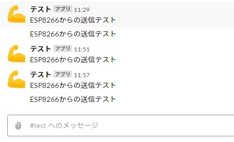 スケッチを書き込んでしばらくすると、Slackの指定したチャンネルにメッセージが投稿されます。