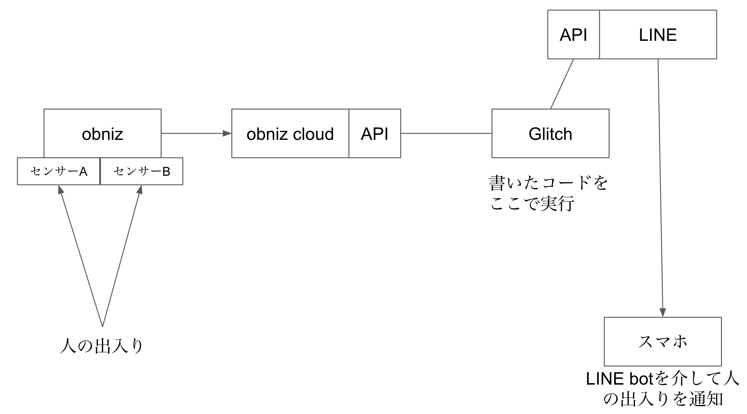 人の出入りを検知したことをbotを介してLINEに通知するところは今後の課題です。