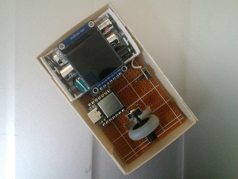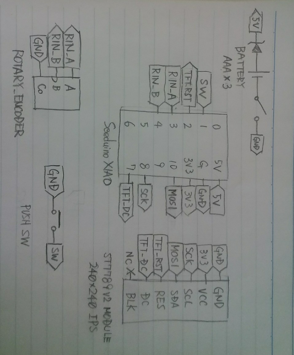 使用マイコンは Seeeduino XIAO。Cortex-M0+ の省電力マイコンなので乾電池でも余裕で動くことでしょう。
