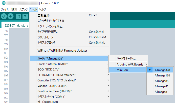 私は、ボードマネージャで「Mini Core」を導入しています。