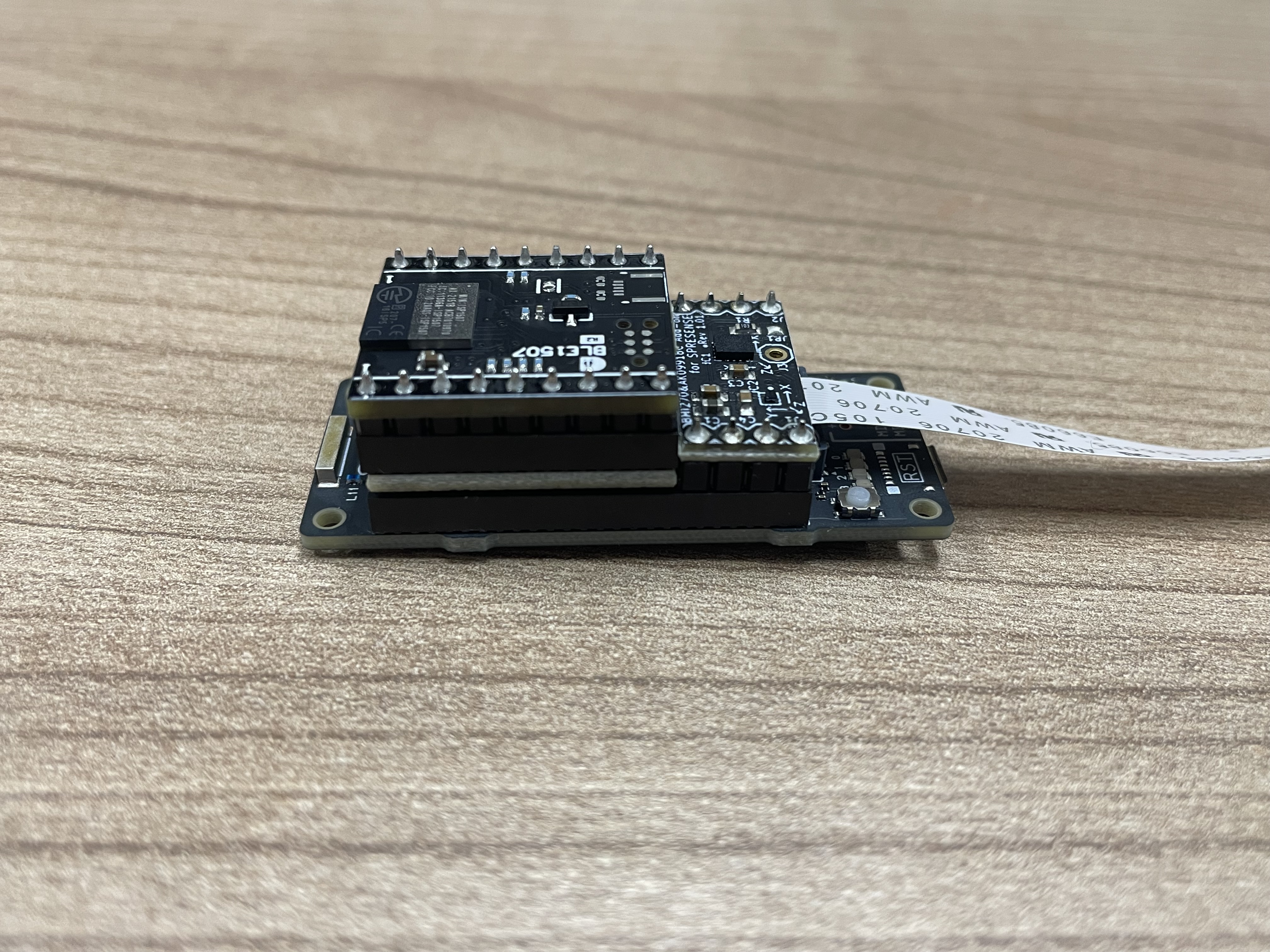 | BLE1507 | メインボードに接続し、Bluetooth Low Energyの無線通信によりセンサデータもしくは判断結果(機械学習の結果)を送信。これにより利用の柔軟性を上げることができる。 | 未 |