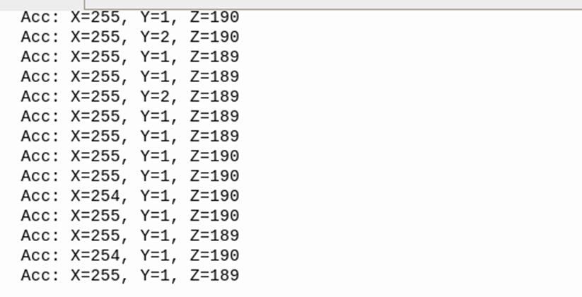 print(f"Acc: X={acc_x}, Y={acc_y}, Z={acc_z}")