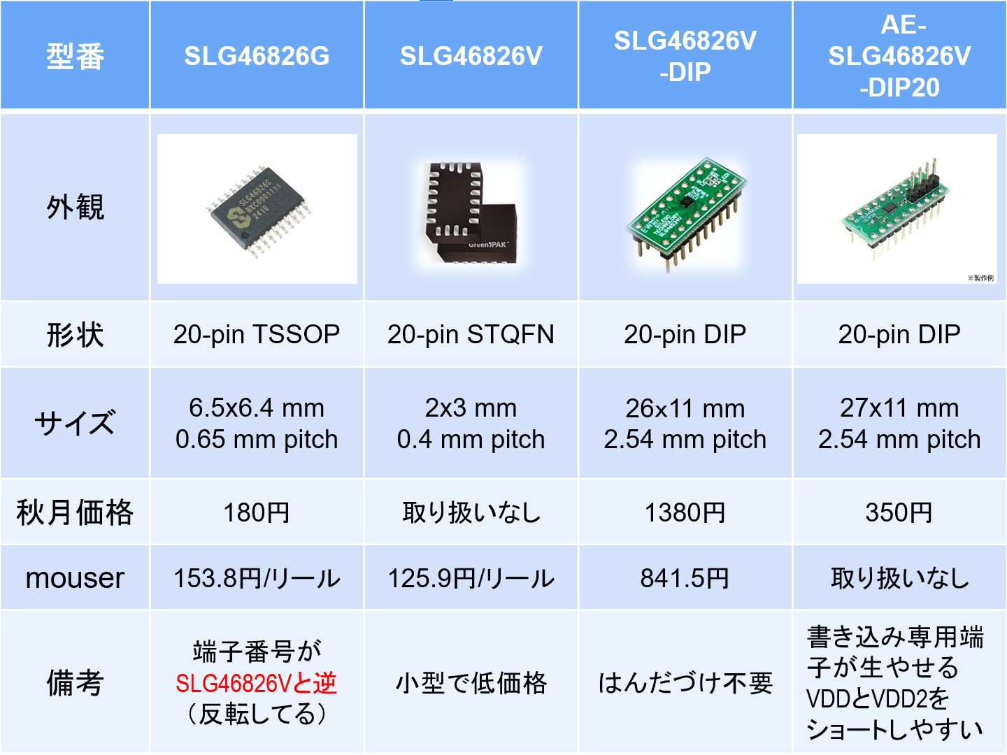 SLG46826の種類