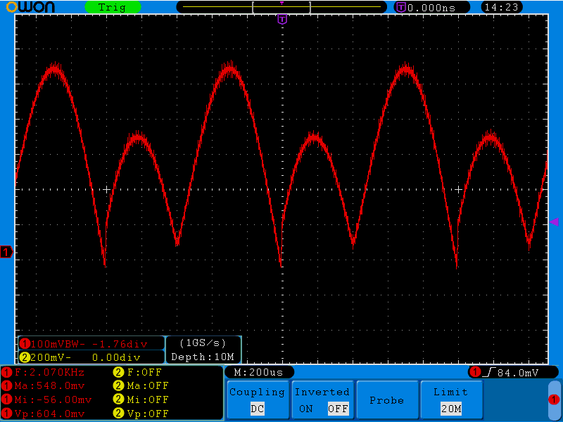 そのためには、よく見かけるダイオードによる整流回路ではなく、オペアンプを用いたロスのない整流回路を用いる。
