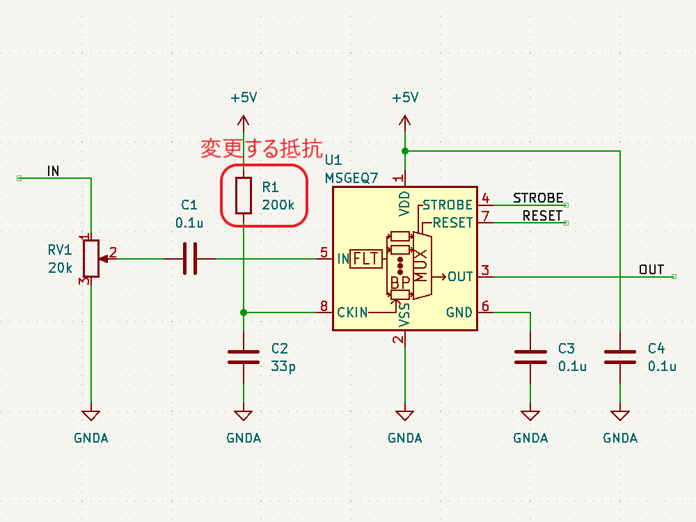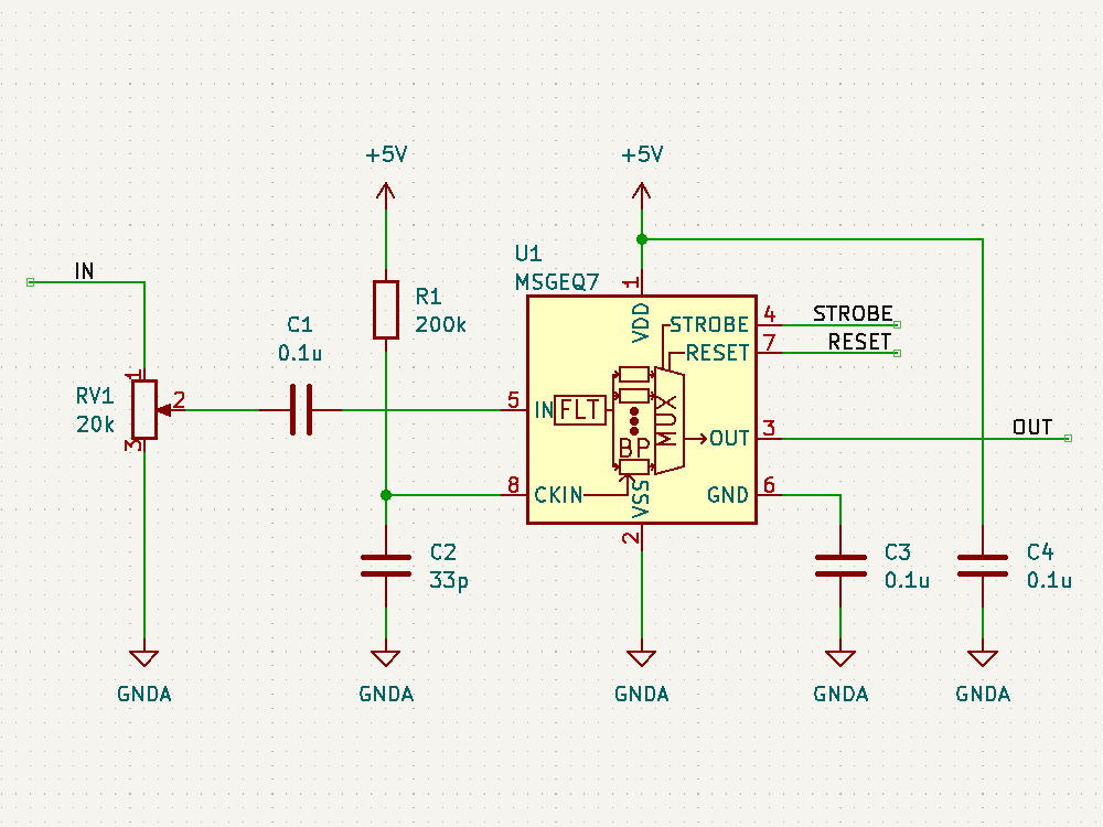 ・MSGEQ7の推奨回路の動作を確認し、データシートに記載されている動作ができることを確認した。