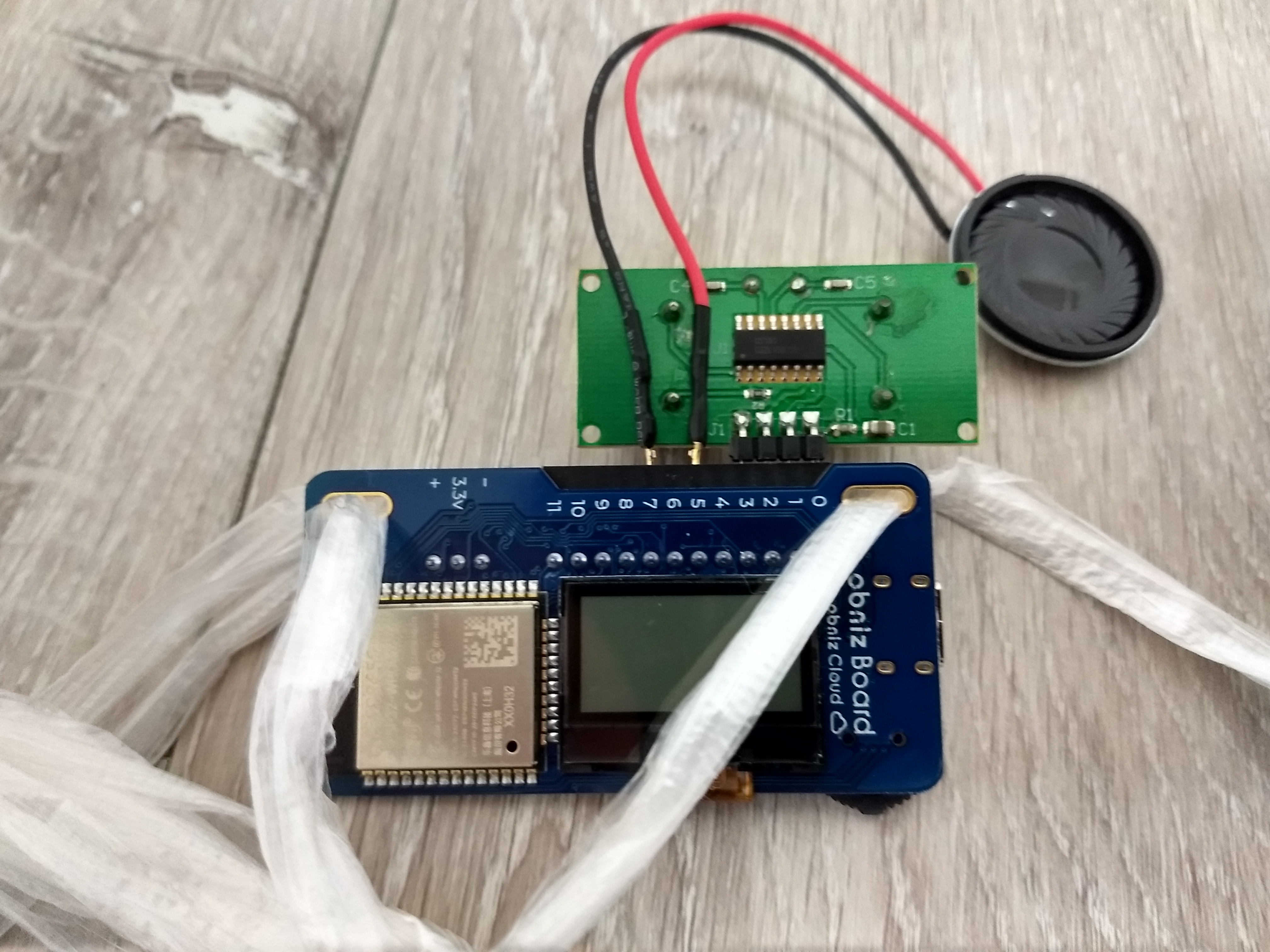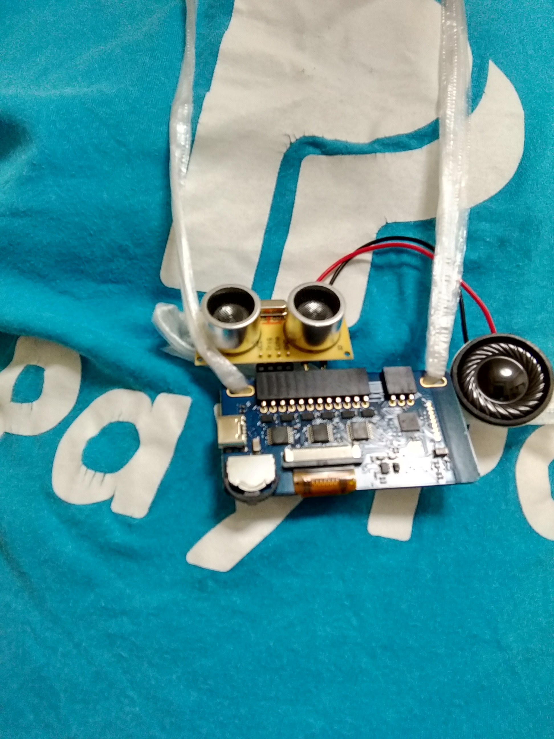 スピーカは適宜、両面テープ等で紐に固定しよう