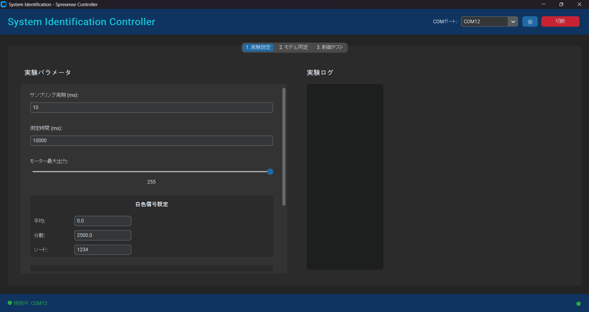 制御テストデータの送信:制御テストのために最適化パラメーターをSpresenseへ送信