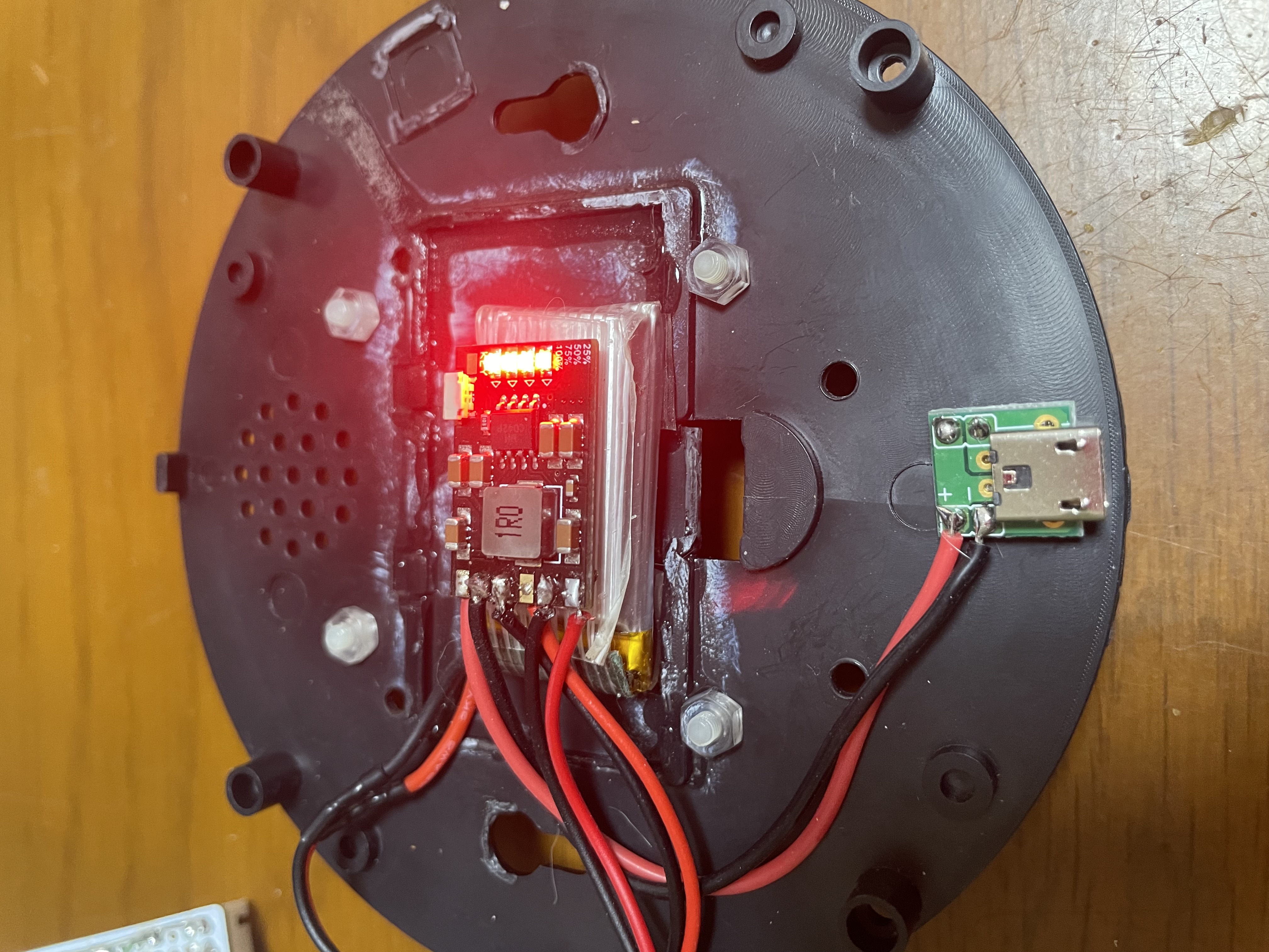 今まで使っていたリチウムイオン充放電基板が 3.7V -> 5V が別基板となっているので収まりが悪い。