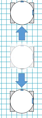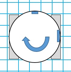 - すぐに回転してしまうと車体が壁にぶつかってしまうので車体+α 進んだところで停止