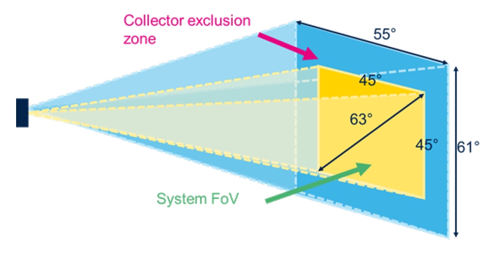 前方 400cm (4m) におけるFOV が45°という広範囲のデータが取得できるセンサになってます