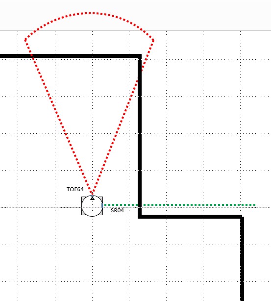 TOF64 のFOVは45 °ですのでかなりな壁を用意しないと中々上手く 壁を捉える事が出来ませんが