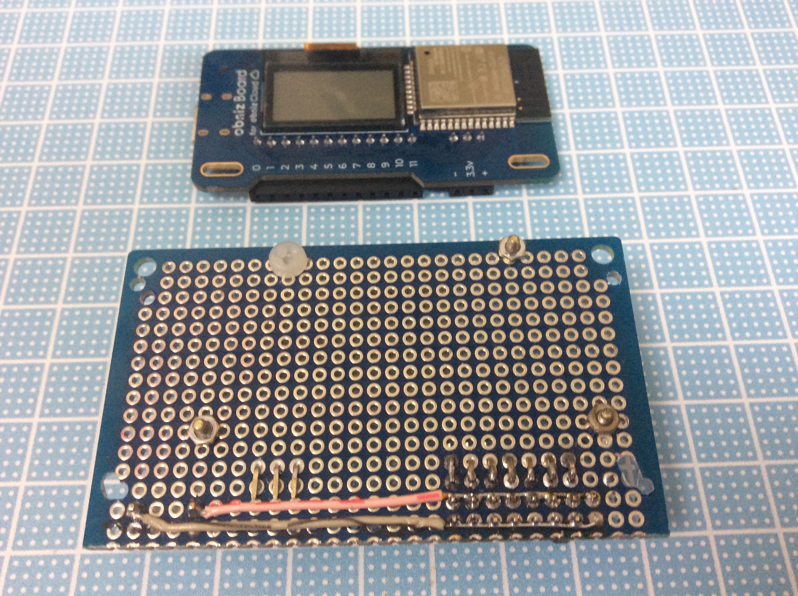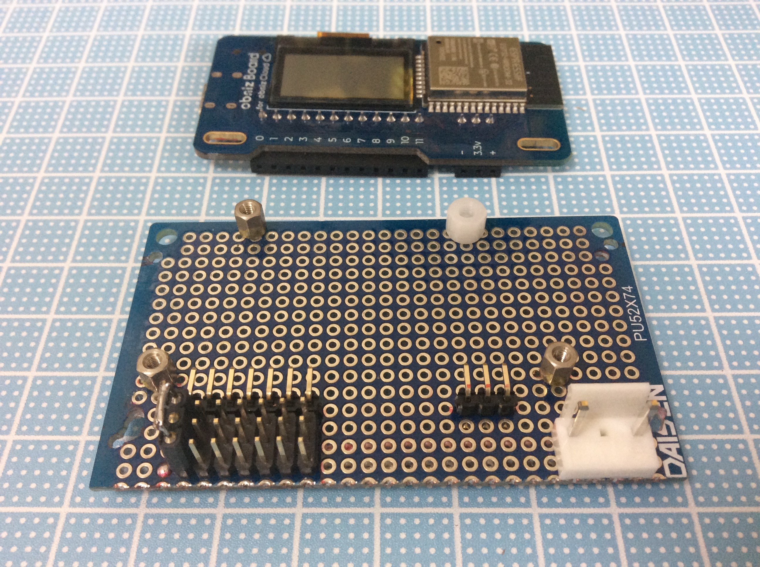 ユニバーサル基盤を加工して、ピンコネクターをハンダ付けしました。