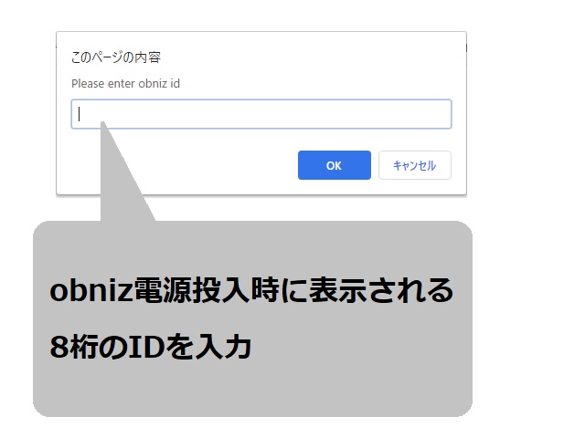なお、"OBNIZ_ID_HERE"と書かれた箇所にobnizのIDを入力すれば、ブラウザ立ち上げ時にIDを入力する手間が省けます。