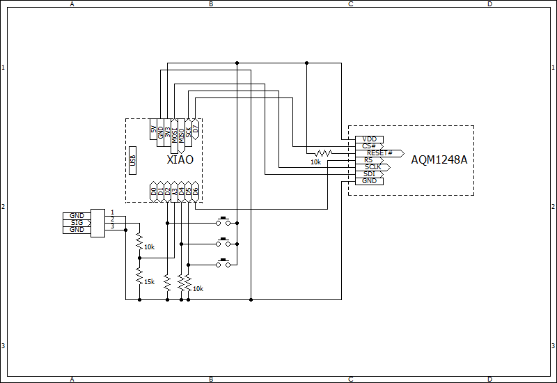 LCDの下のスペースが空いているので、そこにSeeeduino XIAOを入れることでさらに小型化できると考えています。