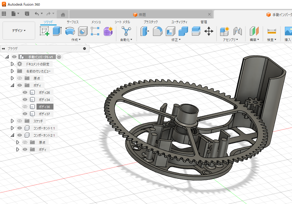 モータベースフレーム、ギヤの配置関係のモデルはこんな感じです