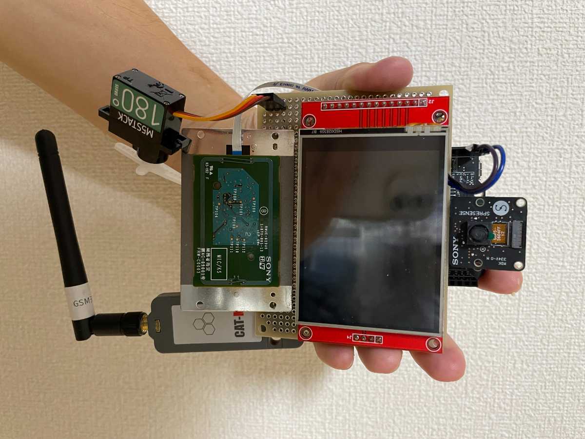 ※撮影日当日に液晶をHATに挿し間違えて故障してしまったため、液晶部分はM5Stackで代用しています。液晶は基本的にQRを表示するだけなので、動作に大きな影響はありません