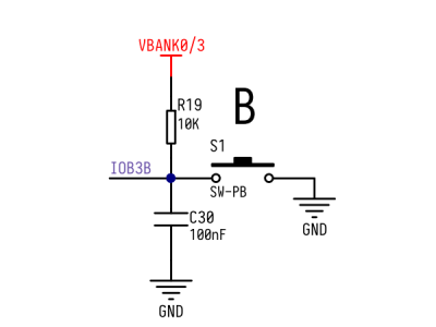 上記の回路図は Tang Nano の回路図 から抜粋しました。チャタリングを緩和するために 0.1μF のコンデンサと 10kΩ の抵抗が接続されています。