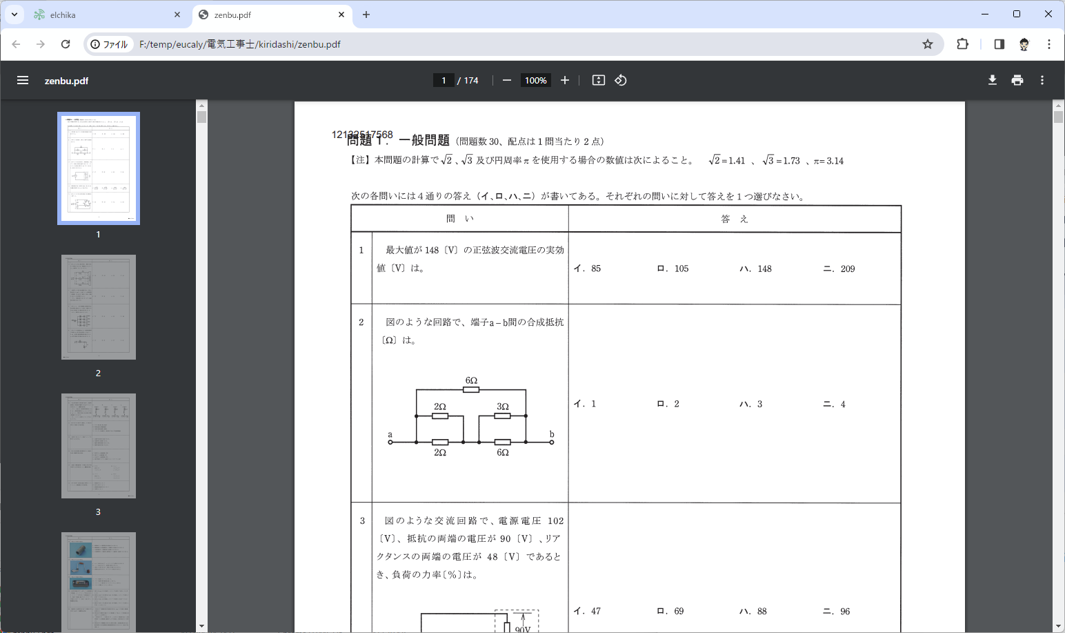 オイラは、一般問題を2Nアップ(2ページを1ページにまとめる)、配線図はそのまま、解答はPC画面表示で勉強していきました。