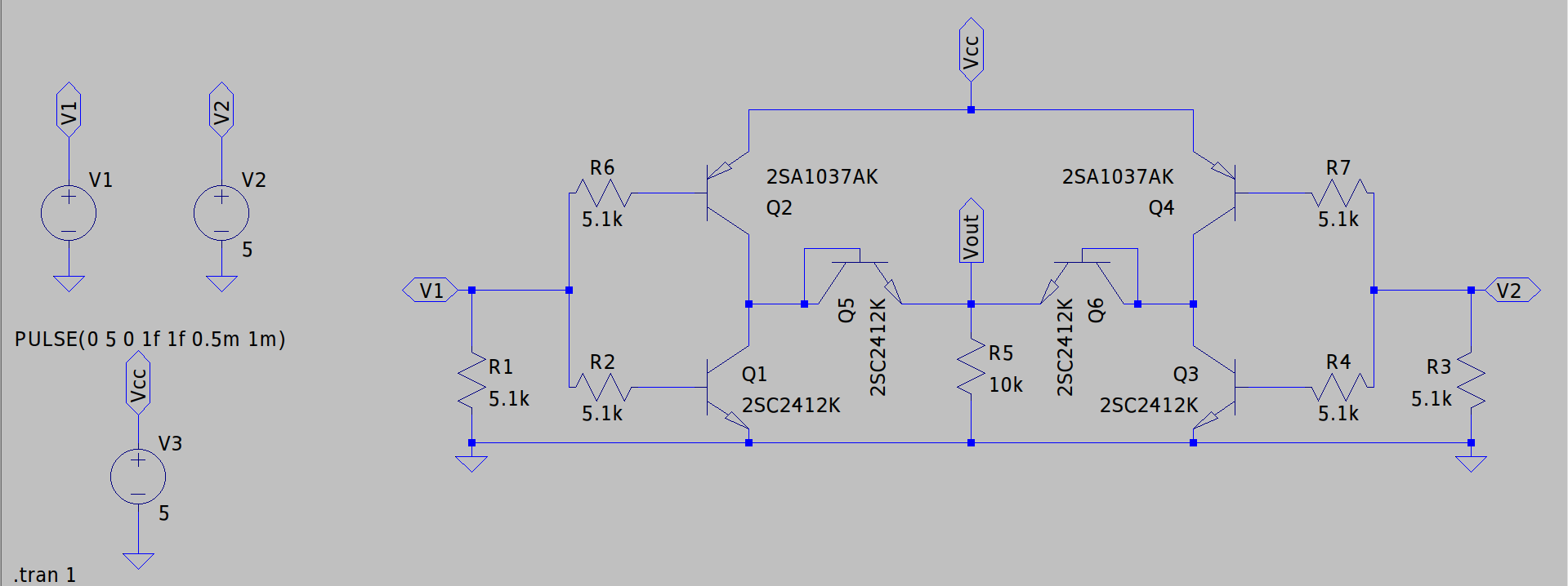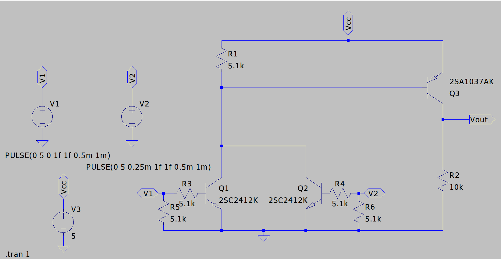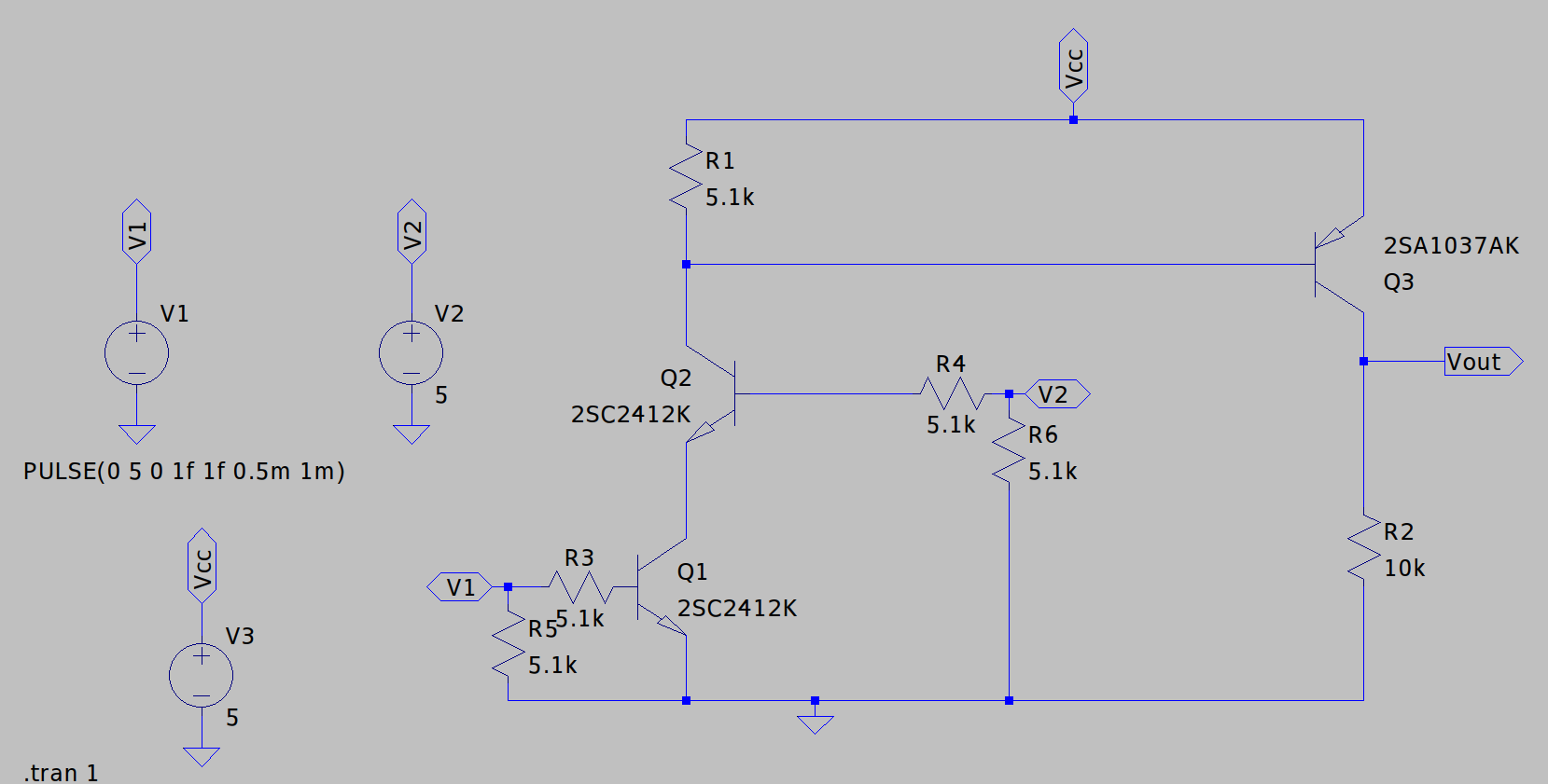 CPUや発振回路などをトランジスタだけで作られる方がいるかもしれません。ですのでメモ書き程度にシミュレートした回路を載せておきます。