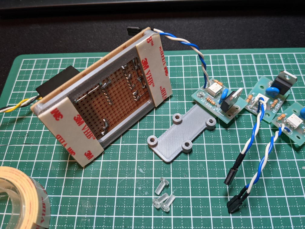 基板は3Dプリントでベースのような物を作って、両面テープで貼り付けます。
